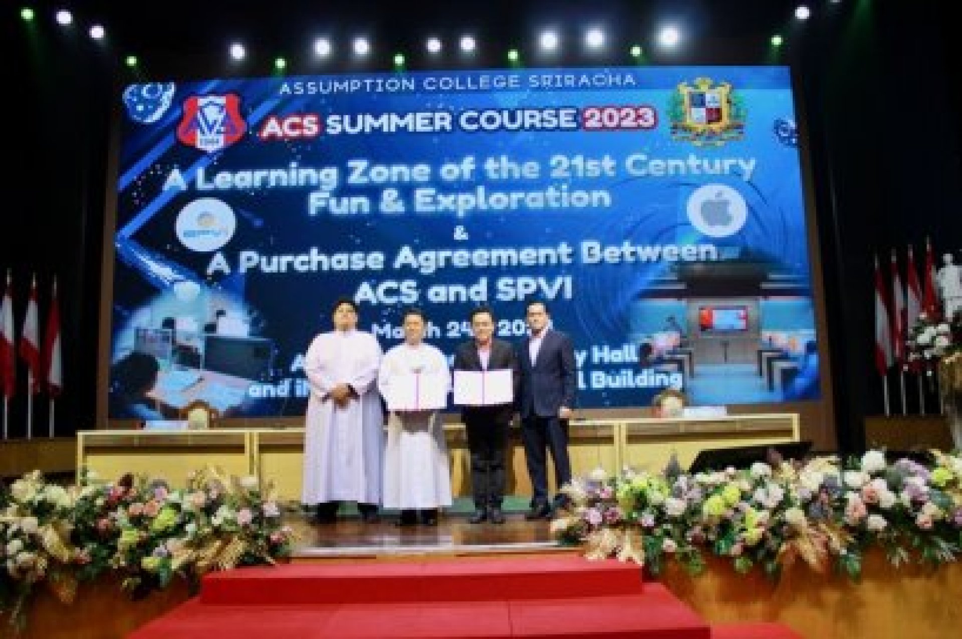 พิธีลงนามบันทึกข้อตกลงความร่วมมือยกระดับผลสัมฤทธิ์ทางการศึกษา (MOU) ระหว่าง โรงเรียนอัสสัมชัญศรีราชา ร่วมกับ บริษัท เอส พี วี ไอ จำกัด (มหาชน) ฝ่ายสถานศึกษา โดย ภราดา ดร.พิสูตร วาปีโส ผู้อํานวยการ , ภราดา กรกวี ยินดีเวท รองผู้อํานวยการ ฝ่ายบริษัท โดยคุณไตรสรณ์ วรญาณ โกศล กรรมการผู้จัดการ  และคุณชนาธิป อดุลย์อารี ผู้จัดการฝ่ายพัฒนาธุรกิจภาคการศึกษา ร่วมลงนามในบันทึกข้อตกลความร่วมมือยกระดับผลสัมฤทธิ์ทางการศึกษา