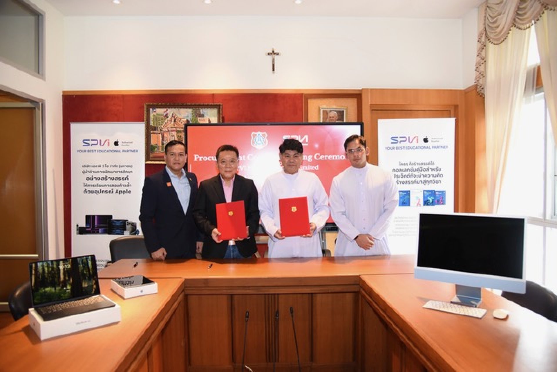 ภาพกิจกรรมเมื่อวันที่ 3 เมษายน พ.ศ. 2568 ภราดา ดร.อาวุธ ศิลาเกษ ผู้อำนวยการโรงเรียนอัสสัมชัญ ลงนามสัญญาการจัดซื้อเครื่องคอมพิวเตอร์จาก บริษัท เอส พี วี ไอ จำกัด (มหาชน) (SPVI) โดย คุณไตรสรณ์ วรญาณโกศล กรรมการผู้จัดการ ในการจัดซื้อ iMac จำนวน 30 เครื่อง MacBook จำนวน 70 เครื่อง โดยมี ภราดาพัชรปกรณ์ ลังบุบผา รองผู้อำนวยการโรงเรียน พร้อมด้วยคุณชนาธิป อดุลย์อารี ผู้จัดการพัฒนาธุรกิจด้านการศึกษา บริษัท เอส พี วี ไอ จำกัด (มหาชน) (SPVI) ร่วมลงนามเป็นสักขีพยาน พร้อมด้วยคณะกรรมการที่ปรึกษาผู้อำนวยการ ร่วมเป็นสักขีพยาน ณ ห้องประชุมอำนวยการ ชั้น M อาคารอัสสัมชัญ2003 โรงเรียนอัสสัมชัญ เขตบางรัก กรุงเทพมหานคร